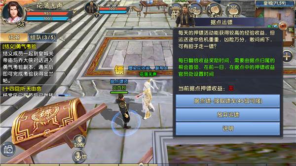 镖行天下任务在活动界面可以接取任务,自动寻路到人物NPC处,大家做任务的时候一定要注意以下三点: