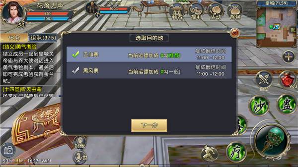 1、 看一下加成时间。运镖这个活动是有加成时间设定的,在加成时间内完成运镖,会有额外的奖励,具体的加成时间是由占领据点的帮派帮主决定的,系统也会有提示,诸位同道切记,尽可能的在加成时间内参与活动。