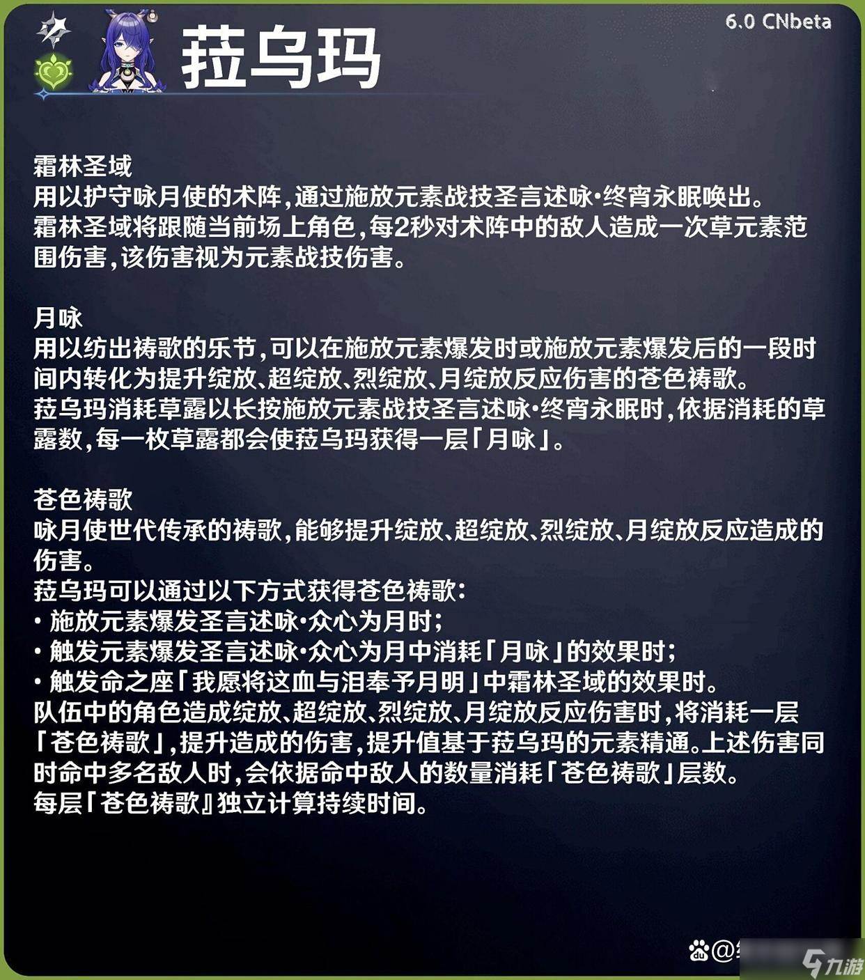 从描述上来看,菈玛乌的数值确实强,而且在6.0版本之后,菈玛乌就要带着须弥数值完爆枫丹了,6.0的草神+须弥混池,菈玛乌就是最佳售后,强烈建议牢玩家,须弥角色多,例如草神21妮露21海森赛诺等的玩家,一定要攒个21鹿女,直接薄纱枫丹体系了。