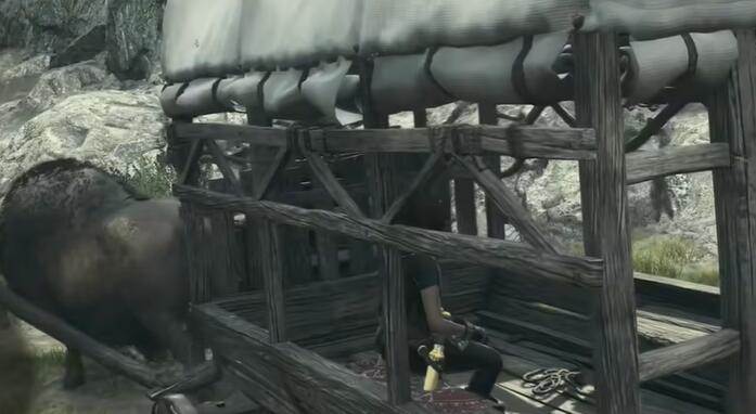 7、之后会有个牛车,玩家坐上去后,点击闭上眼睛就能快速抵达了。