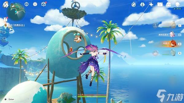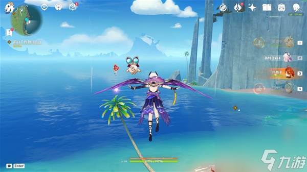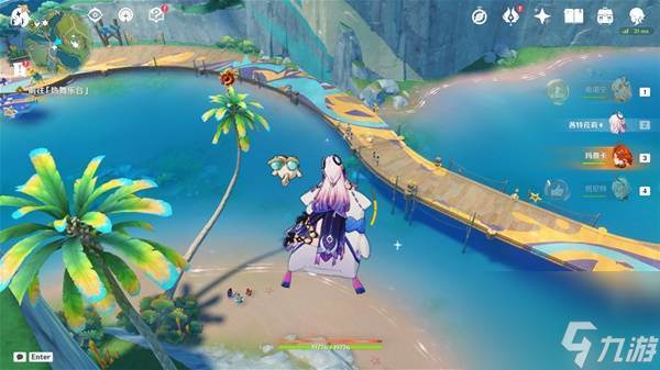 神瞳位于海边的椰子树上,可以从旁边高处飞下来,也可以在树下魂附阿夏拿取