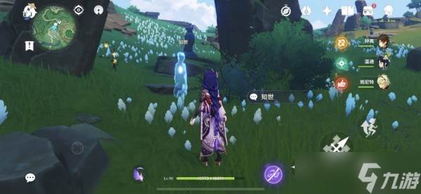 1、前往「逢岳之野」,来到下图位置与『知世』对话。