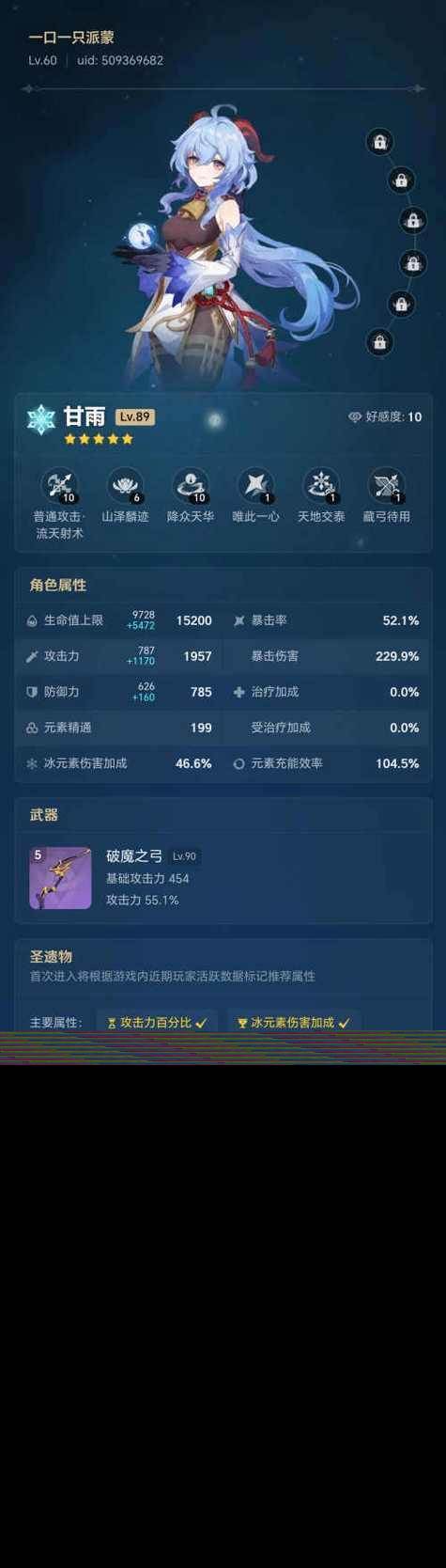 1、原神甘雨武器与圣遗物的完美搭配