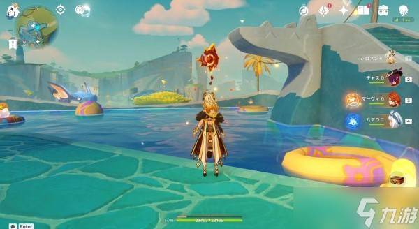 33.从浪浪湾西南边传送锚点出发,继续向西南方向前进,在水面上,借助鳍游龙跳跃可拾取。