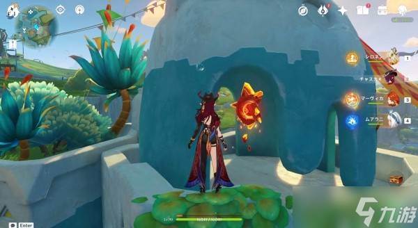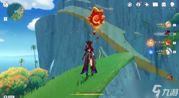 22.从彩彩崖东南传送锚点向西南方向走,操作机关后在空中拾取。