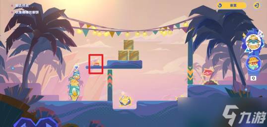 3.搬运箱子解除第二个挡板:再次切换至小矮子,此时你会注意到平台上方有三个箱子。小矮子的任务是将这三个箱子依次推落到下层。完成箱子推落操作后,切换到大个子。大个子需要调整自身位置,把从上层推落下来的箱子推到黄色按钮上。当箱子成功压住黄色按钮,第二个挡板就会被移开。