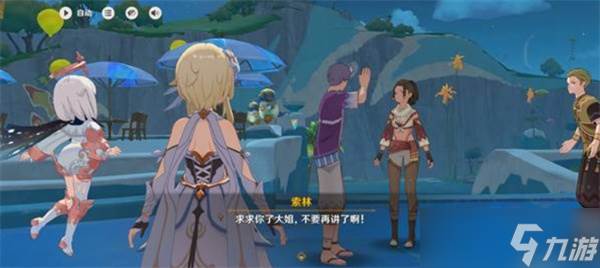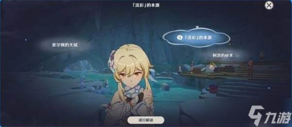 2、与墙边的阿夏互动,触发任务剧情,接取“流彩的踪迹”。