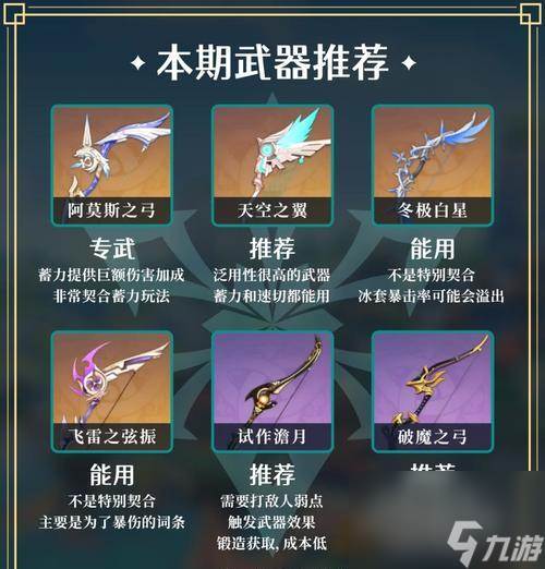 甘雨的武器要选择攻击力较高的,最好带有暴击率加成。