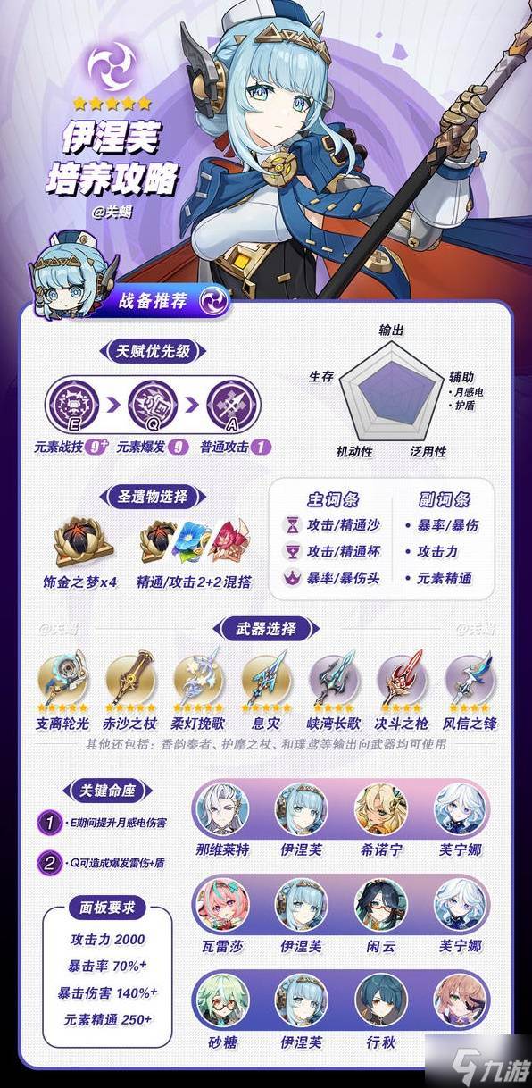 《原神》伊涅芙是5.8版本新增的角色,很多玩家想要知道她的装备该如何搭配,下面请看“关蝎”带来的《原神》伊涅芙装备及队伍搭配推荐,希望能够帮助大家。