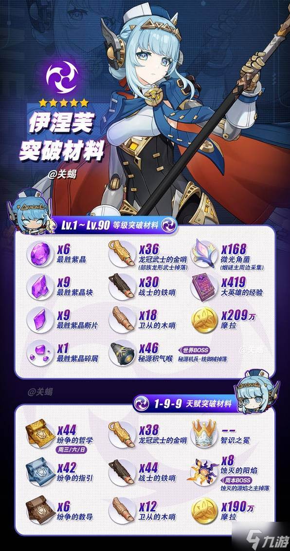 包含角色等级「lv.1~lv.90」和天赋等级「1-9-9」所需要的突破材料清单;天赋、周本、各BOSS、圣遗物等材料秘境挑战位置,以及采摘收集类材料位置路线图。