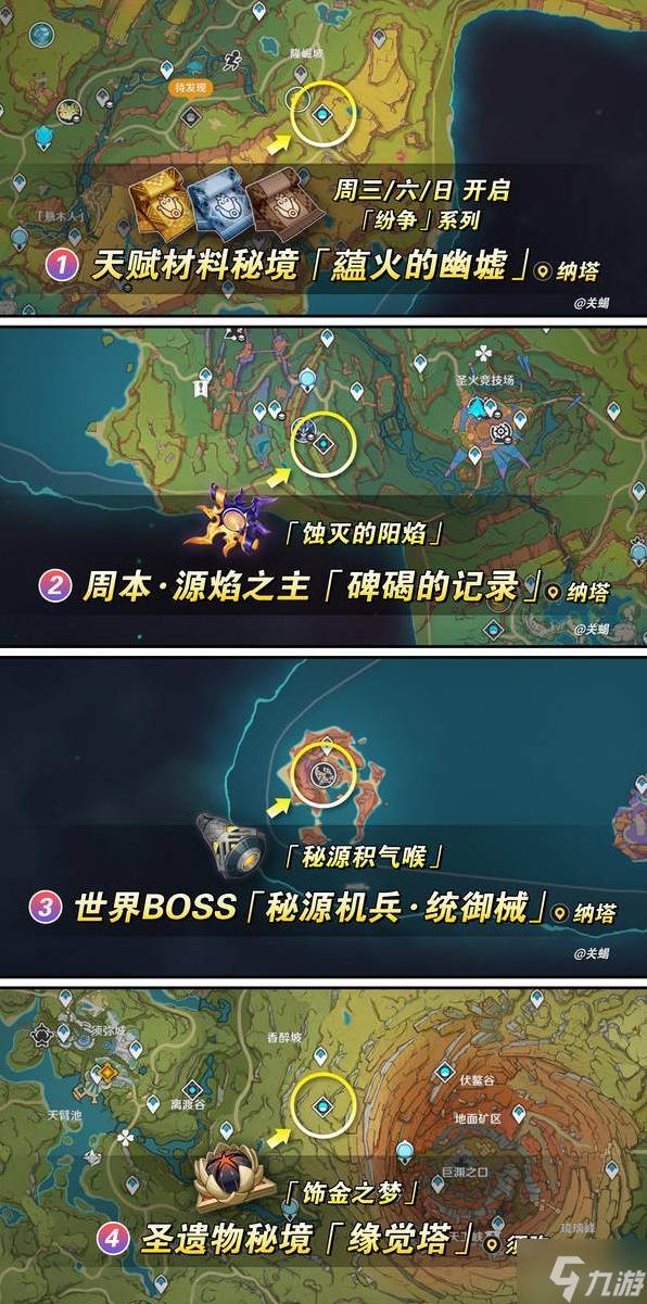 • 周本BOSS材料「蚀灭的阳焰」来自周常BOSS「蚀灭的源焰之主」掉落,位于纳塔