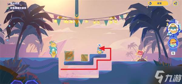 控制两个角色依序向右移动,抵达终点,完成本关挑战。