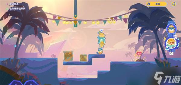 切换回大个子,跳至小矮子头顶拾取空中的娜娜丝梨饼。