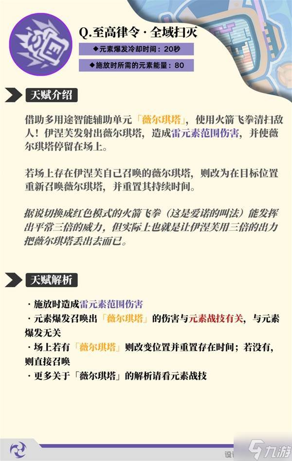 「薇尔琪塔」每2秒移动至一名敌人附近,并造成雷元素范围伤害