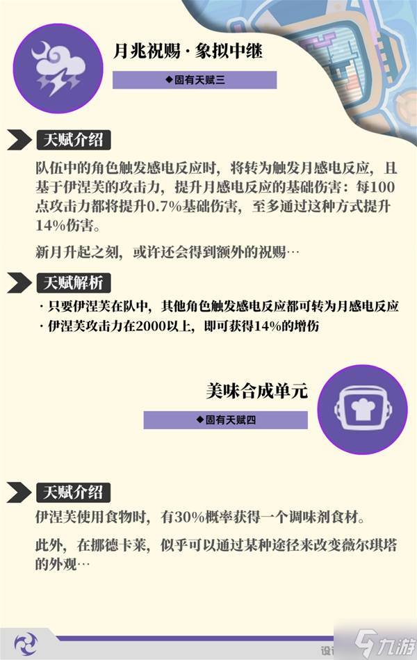 六命:展开护盾后,当附近的雷暴云对敌人造成伤害时,基于伊涅芙的攻击力,对场上自己的角色周围敌人造成雷元素范围伤害,并视为月感电反应伤害