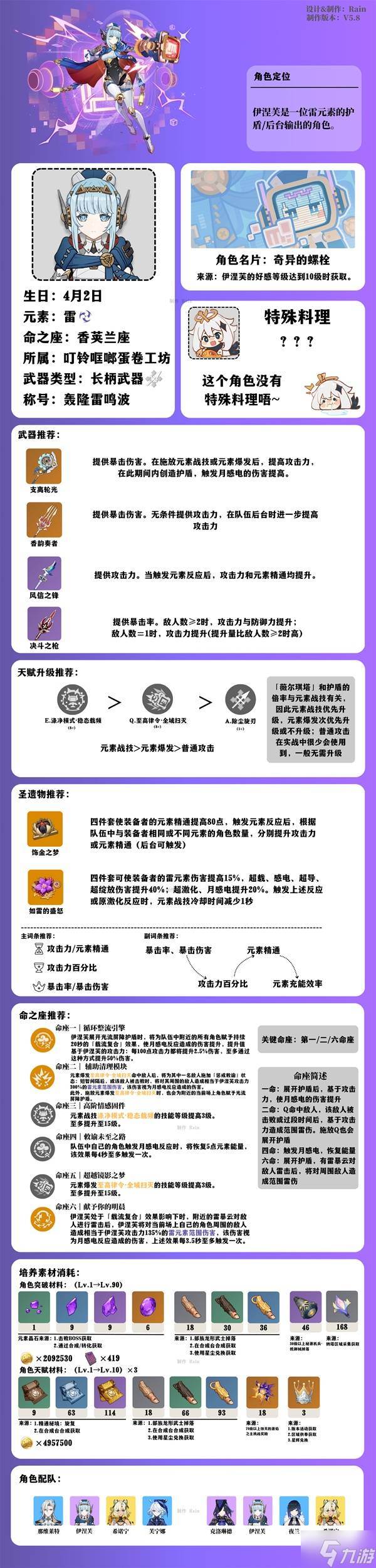 《原神》的伊涅芙是一名五星雷属性角色,那么伊涅芙要如何培养呢?下面请看由“hiRain”带来的《原神》伊涅芙详细培养指南,希望对大家有用。