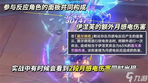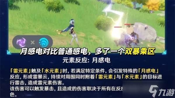 月感电是伊涅芙引发的特殊元素反应。当伊涅芙在队伍中时,我方角色触发感电反应会生成雷暴云,每2秒攻击一次水雷共存的敌人,伤害类似感电,但无视防御,不吃普通增伤,有双暴乘区。
