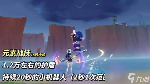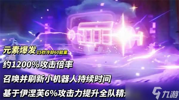 伊涅芙每100攻击力提升0.7%月感电基础伤害,至多14%。元素战技提供护盾和召唤小机器人,盾量约1.2万,持续20秒冷却16秒。