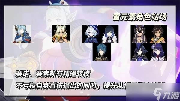 克洛琳德/赛诺/赛索斯/雷电将军+芙宁娜/夜兰/行秋+伊涅芙+希诺宁。赛诺、赛索斯有精通转模,配队优秀。