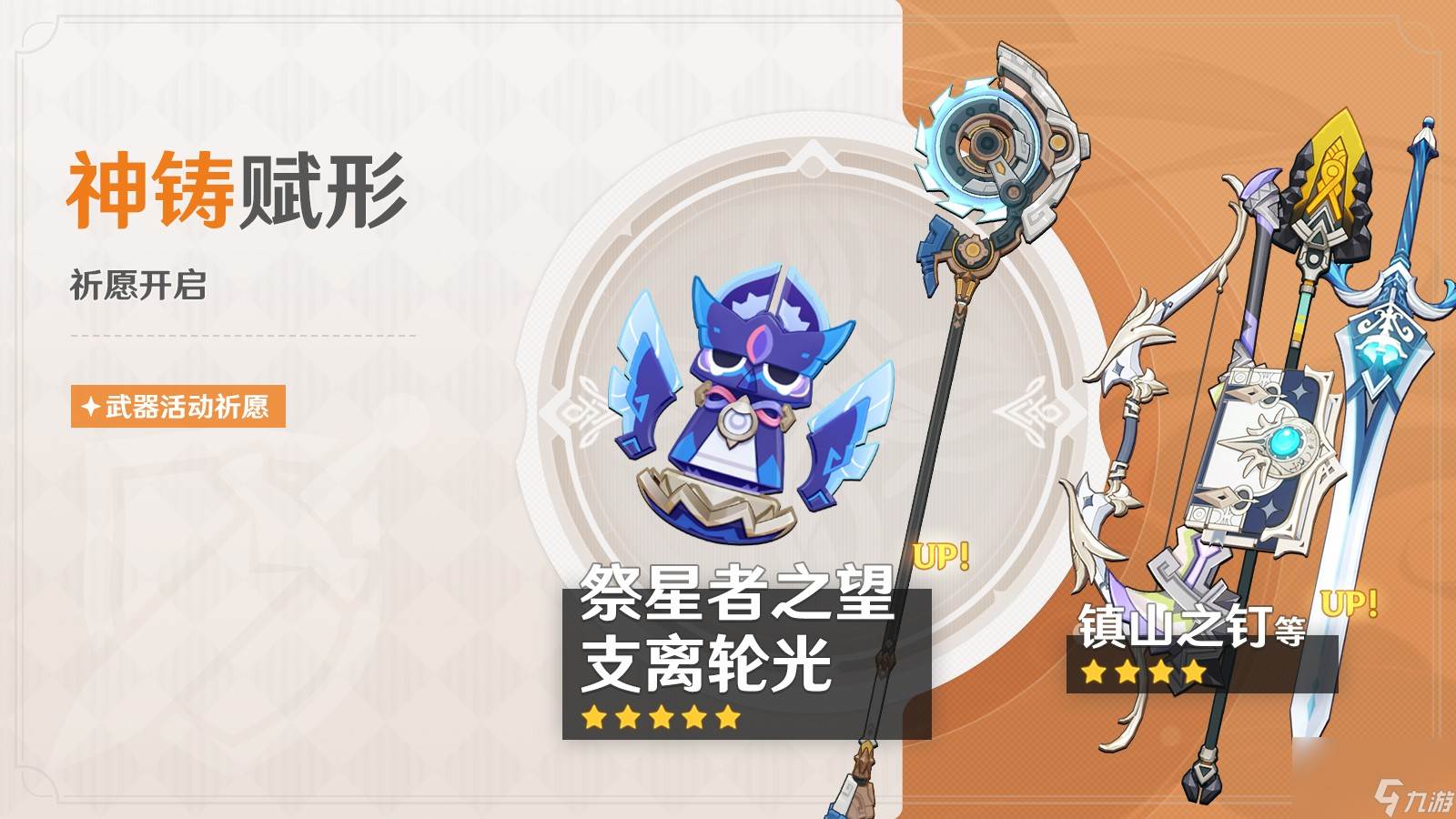 除此之外,「神铸赋形」活动祈愿也已开启,全新限定五星长柄武器「支离轮光」、限定五星法器「祭星者之望」迎来概率UP!