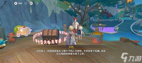 任务前引:旅行者和派蒙从西北侧离开悠悠集市时,遇到了一位玩偶设计师卡内……