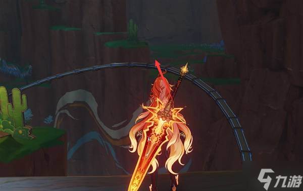 地下「刺梨岩内部洞穴 · 北区」较高处山坳中接近出现并击败熔岩游像解锁