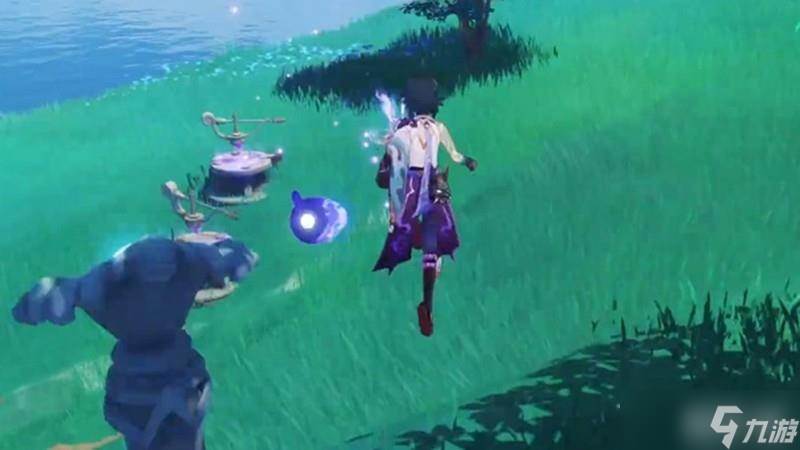 解谜的关键在于中间指针的调整。如果身上带有雷种子,直接站在中间指针与佛像之间的路径上,靠近指针即可完成校准。没有雷种子的情况下,可以靠近右侧雷灵获得感电效果,再回到中间指针位置同样能触发解谜机制。