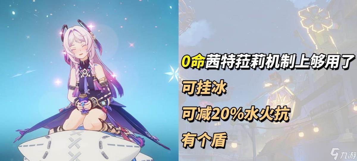若你配队需要茜特菈莉但原石不咋多,个人推荐拿下00即可,毕竟角色基础机制已经提供了20%水火减抗与持续的范围挂冰机制,是完全够用的。
