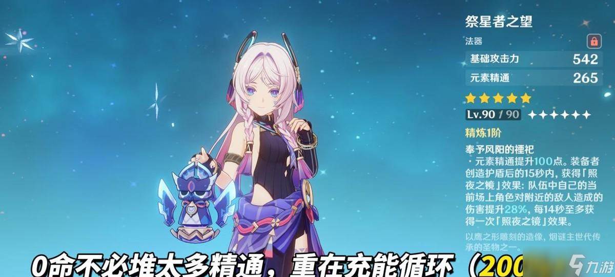 「祭星者之望」在增伤区爆炸的当前时代,武器提供的28%增伤实际提升很微弱,至于那365精通则更多体现在1命茜特菈莉的增幅方面,同时2命提升巨大,综合考虑在2命之后才会考虑抽取祭星者之望。