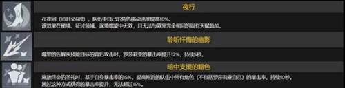 暗中支援的黯色:又是个新鲜的辅助能力,但其实效果还好,基于自身暴击率15%的设定就注定到队友身上不会太高,不过也算可以了,毕竟是提升暴击这种较少的属性。