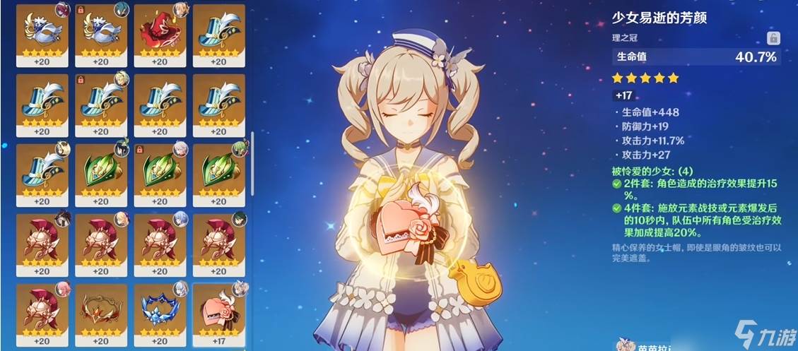 芭芭拉作为新手阶段最容易获取的治疗角色,其圣遗物搭配核心思路是最大化生命值属性。由于她的治疗效果完全依赖生命值上限,前期资源有限时应优先选择能直接提升生命值的圣遗物套装。冒险家两件套提供500点固定生命值加成,这对低等级角色提升显著;游医两件套则能增强20%受治疗效果,两者都是开荒期性价比极高的过渡选择。若追求更高治疗量,可凑齐冒险家或游医四件套,但四件套效果的实际利用率可能不如混搭组合。