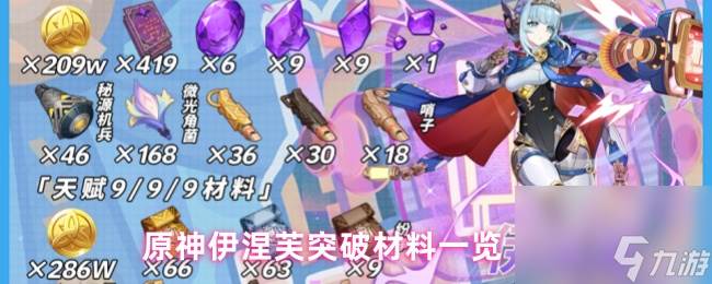 原神伊涅芙需要什么突破材料,5.8夏日版本将要开启,新角色伊涅芙即将登场,伊涅芙和专武突破材料官方已经公布,玩家冰是真的菜QAQ为方便准备材料给大家做了一张图,下图为伊涅芙90级天赋9/9/9材料和专武「支离轮光」90级材料。有需要的玩家可以提前准备好。
