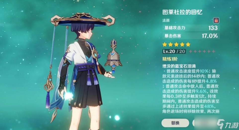 不过需要注意的是,使用追忆套的时候一定要保证为元素战技预留足够的能量值。词条选择比较简单,主词条带攻击、风伤或者是暴击率爆伤均可,副词条最好是提供双爆加成以及攻击力。流浪者的武器首选自然是他的专武图莱杜拉的回忆,当然抽不到专武的玩家也可以考虑用别的武器替代。类似神子的专武神乐之真意,或者是常驻武器池中的西风原典与天空之卷都是优秀替代品。