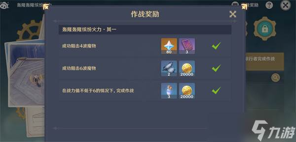 每关成功击败4波怪物可获得80原石 拿原石的门槛依旧很低 一轮挑战共12波 最后一档奖励略有难度 不过手法比较好也可以一次性满血通关 。
