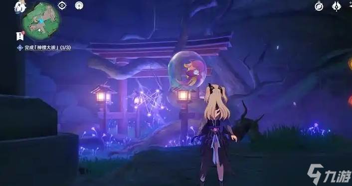 进入神樱树结界,首先完成稻妻地区的主线任务不动鸣神,恒常乐土,这是解锁神樱树结界的前置条件。完成主线后,神樱树会自动解锁,玩家可前往鸣神大社后院的神樱树所在位置。从鸣神大社传送点出发,绕到神樱树左侧,可以看到下方有一个空中平台,直接滑翔至该平台即可。