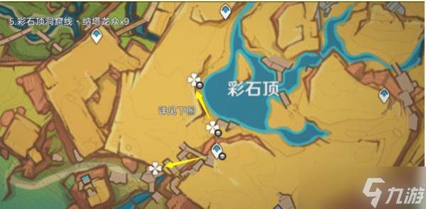 5、彩石顶洞窟讨伐路线,如下图所示。