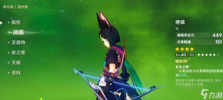 作为一款风靡全球的开放世界角色扮演游戏,《原神》一直以其精美的画面和独特的剧情受到了玩家们的热爱。在游戏中,武器的选择和搭配对于角色的实力提升至关重要,而提纳里武器则因其特殊属性而备受关注。本文将针对原神提纳里武器的选择和搭配进行深入探讨,为广大玩家提供有益的指导。