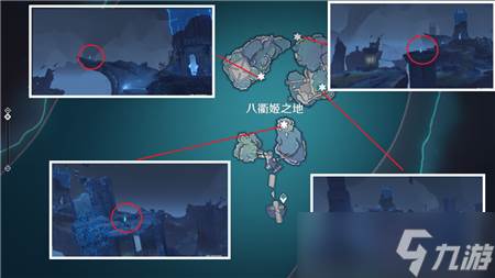 其他两个地方的任务道具(高门之火)都有指引,这个八衢姬之地的高门之火是给你看图片然后自己找,上图就是这个地方的四个高门之火的位置