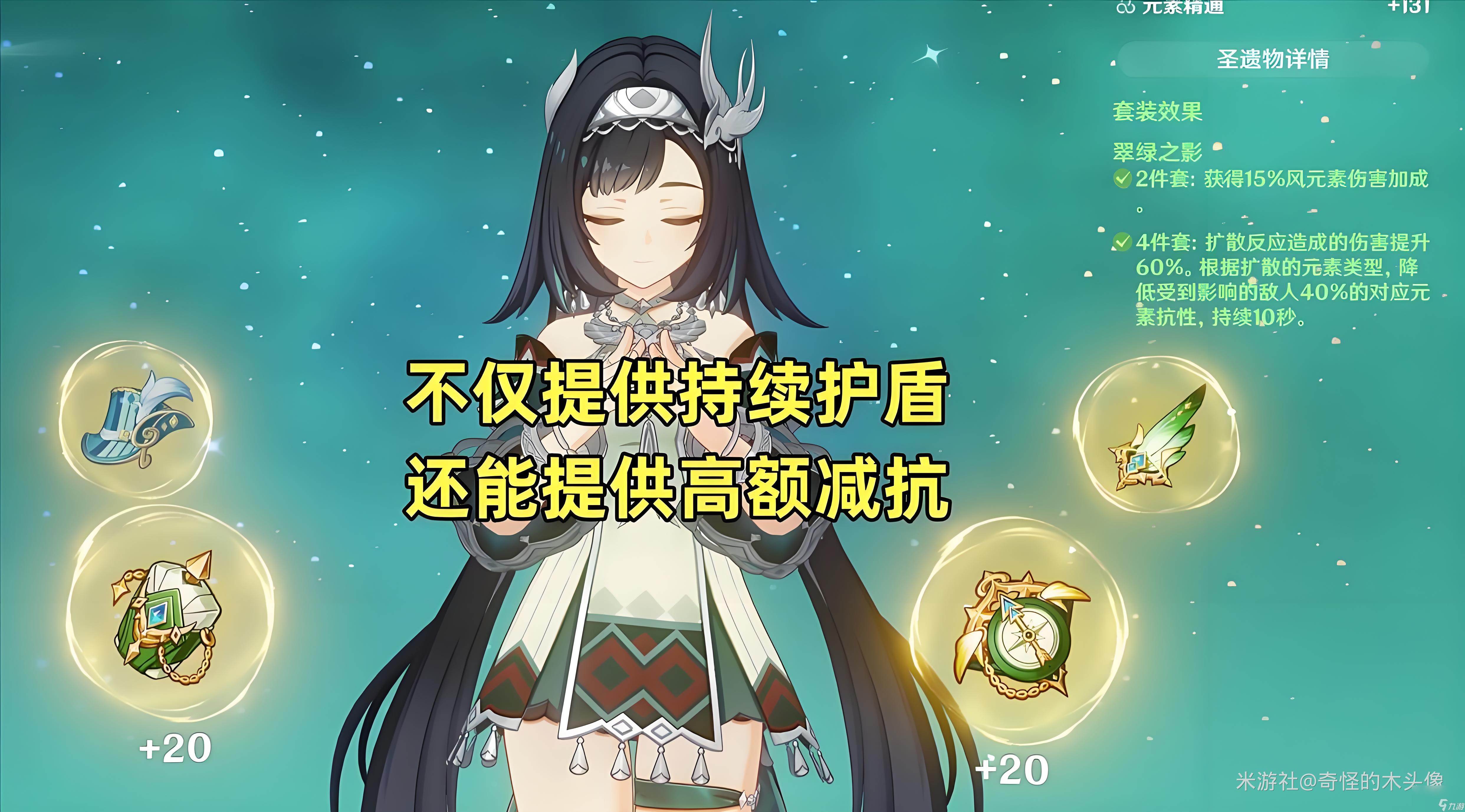 2、蓝砚是个风元素的辅助,能够带翠绿之影四件套。实战中,与水火雷冰元素,触发扩散反应之后,能够对敌人减少40%对应元素抗性