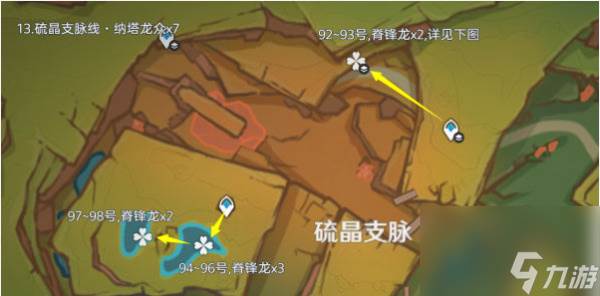 15、硫晶支脉山脉横裂处讨伐路线,如下图所示。
