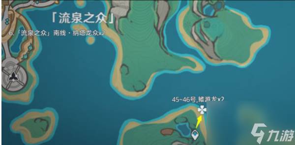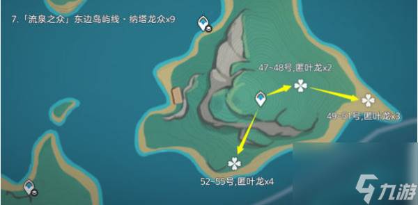 8、流泉之众东侧岛屿讨伐路线,如下图所示。