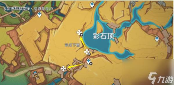 5、彩石顶洞窟讨伐路线,如下图所示。