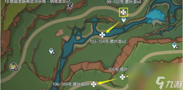 16、硫晶支脉南边河谷讨伐路线,如下图所示。