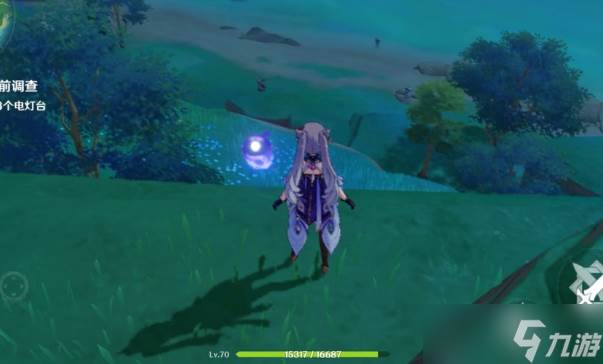 拿完之后打开地图并传送到珊瑚宫正下方的那片区域,传过去之后右转并飞到脚下的大树下面。落地之后就可以看到两只土元素的浮灵怪,杀完之后就可以将两个浮灵晶核拿到手。拿完之后顺着紫色大树右侧的石墙一直往上爬,上到顶部之后左拉视角就可以在蓝色草堆中发现两只浮灵怪。将这两个浮灵晶核捡到手之后,贴着身下的瀑布一直飞到正北方向的雷种子屏障那里。在雷种子屏障的正上方就会刷出一只岩元素的浮灵怪,杀掉之后就会掉一个浮灵晶核。