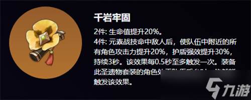 2、四件套效果:释放元素战技提升全队攻击力并提升护盾值。