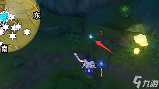 2、朝着东北方向移动,找到第一个能量球。