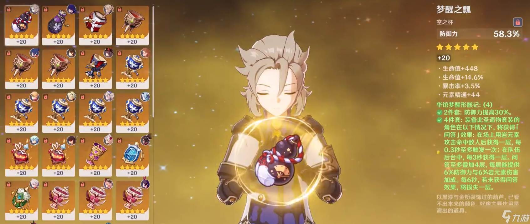 从套装搭配的角度分析,华馆梦醒形骸记四件套是阿贝多的毕业选择,其四件效果进一步提升了防御力与岩元素伤害。若选择该套装,岩伤杯的收益会被进一步放大,因为套装效果已提供大量防御力加成,稀释了防御杯的作用。而过渡期使用磐岩两件套搭配散件时,岩伤杯的优先级同样较高。需若队伍中存在其他岩系角色触发双岩共鸣,岩伤杯的增益会更加稳定,因为共鸣效果已提供额外的岩元素抗性削减与护盾强效。
