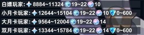 4、双月卡玩家:13344-15784号原石、19-22相遇之缘、14纠缠之缘、0-600创世结晶。
