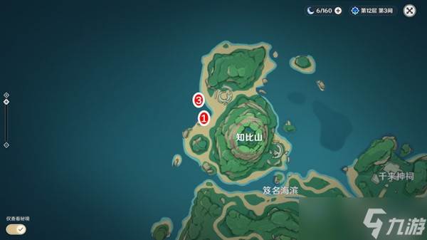 在最少的水钱箱点位上岸,并且周围没有沉船,或许只有这一个地方可以登上【鹤观】吧~