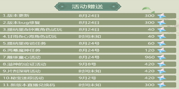 以上去全部内容就是由小编为大家带来的原神3.0版本预计获得原石详情一览,通过在查看了解在这个版本里能够获得多少,希望为大家带来更多有帮助的内容。